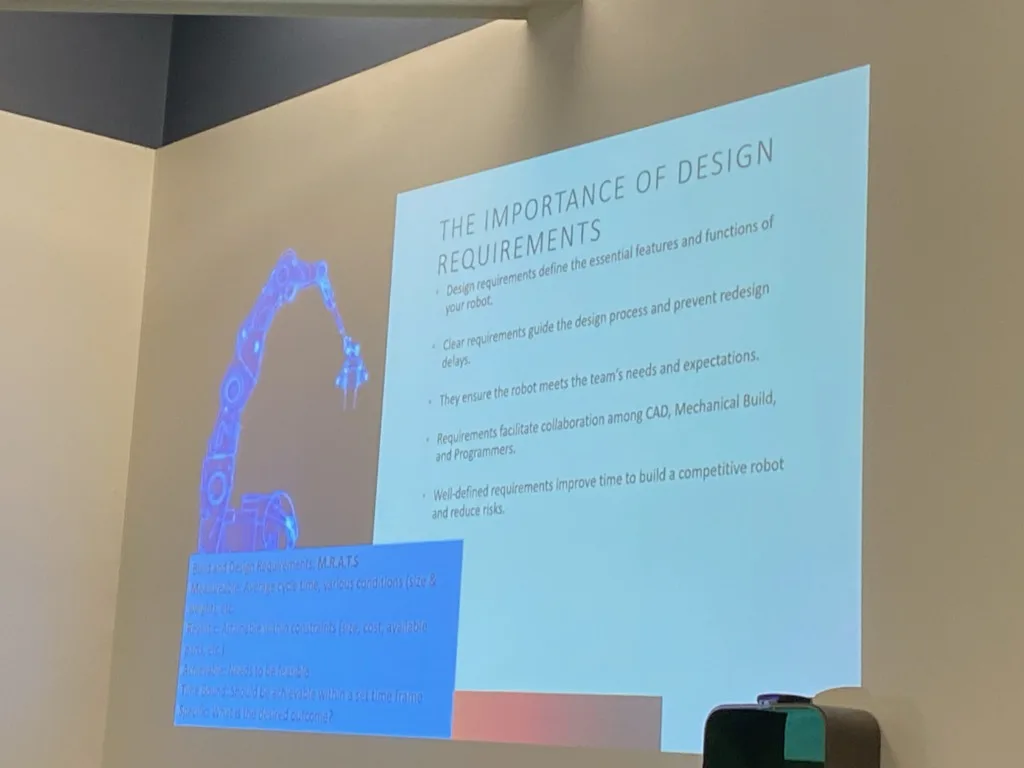 At 12:00 today the video for this season, Decode, was released. We watched it with 5 other teams: hosted by #3311. This year is greatly different from the previous year with a new system for qualifying for State, our number one goal this year. We also gathered information on other teams design process and a 3D printed robot.