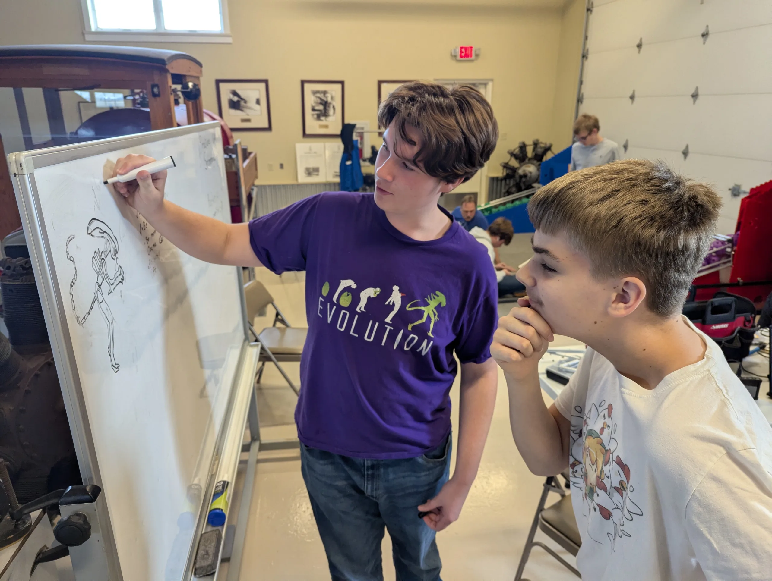 Jude, Pellum, Grayson and Kemper tested larger diameter fly wheel for the shooter.