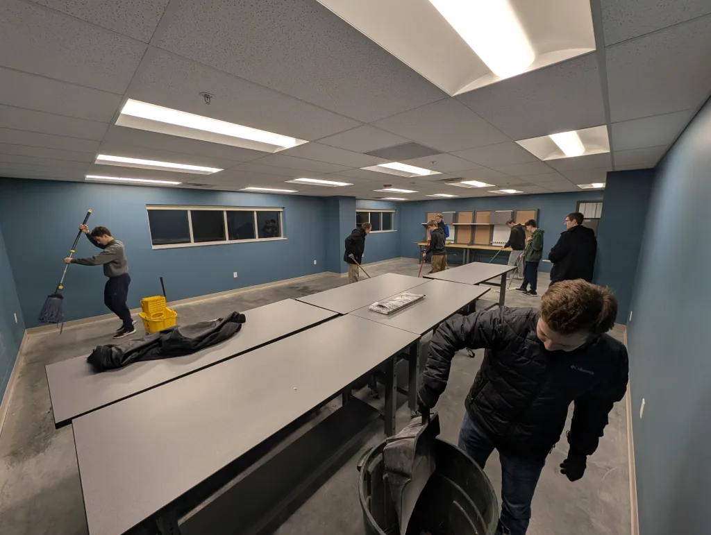Overview 2/6/26: For the first half of practice the team got to see the new room. The furniture in it is brand new and looking good. This will allow future members to be set up for growth. After this was explored and the room was cleaned we returned to the old building to continue practice. The builders attached the new launcher and started on the new hammer. Unfortunately the parts for the Geneva mechanism were not all sent and will not be in for a few more days. The coders were productive and put together 3 different codes to allow builders to test for servos and motors. The marketers started the design for the slide presentation.