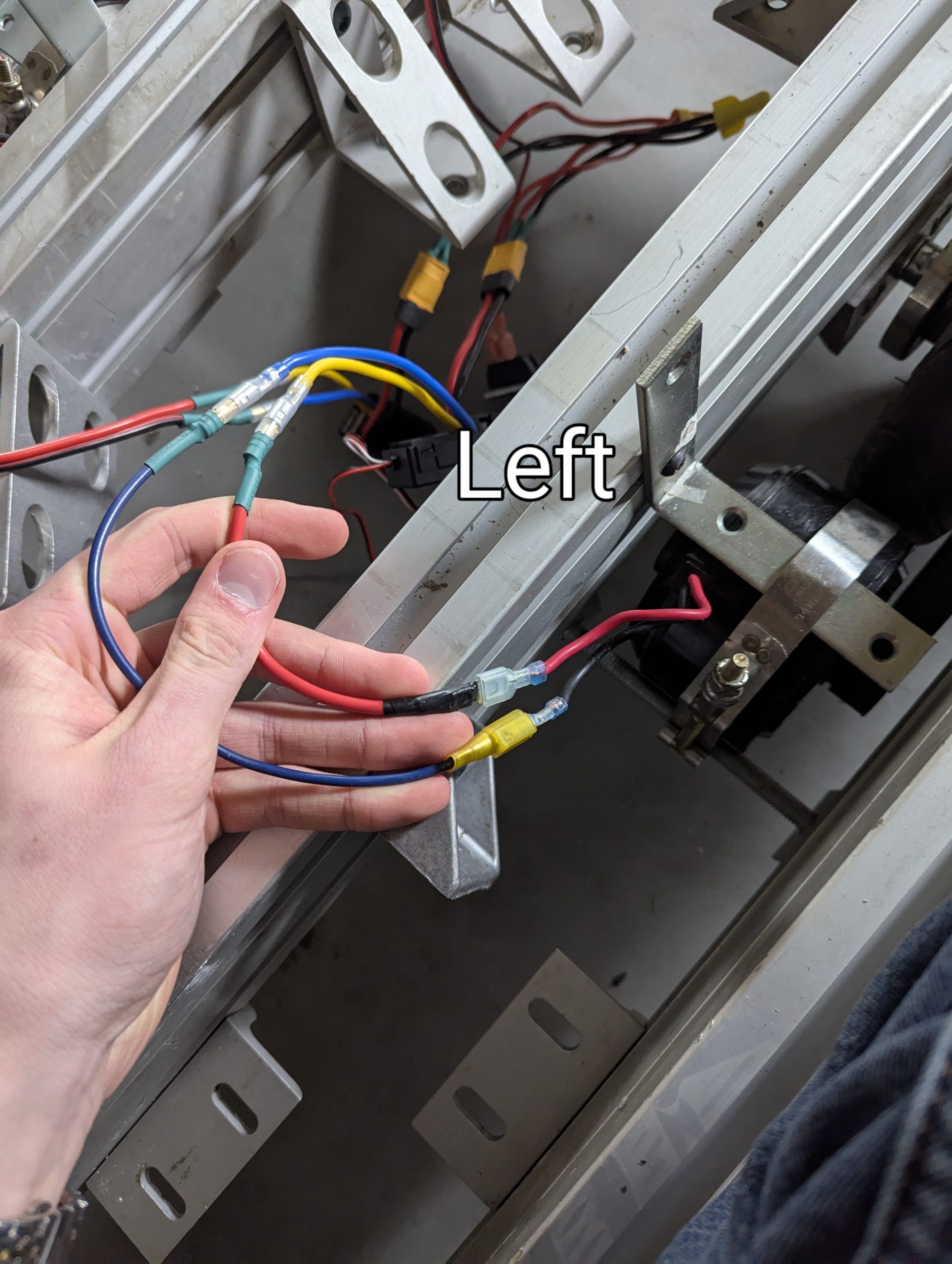 The left motor was the only motor that caused issues, the initial soldering of the wire to the battery had slipped. Thus, a large amount of current was being forced through a very thin connection, creating lots of heat. After discovering the problem and resolving it. There were no further issues with the drive train.