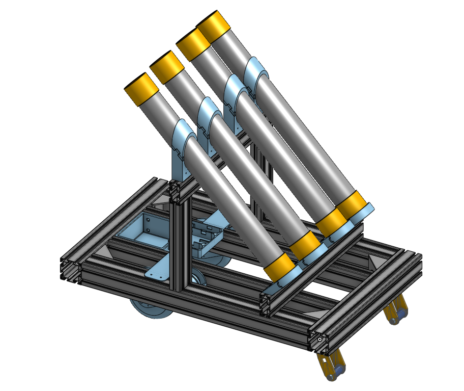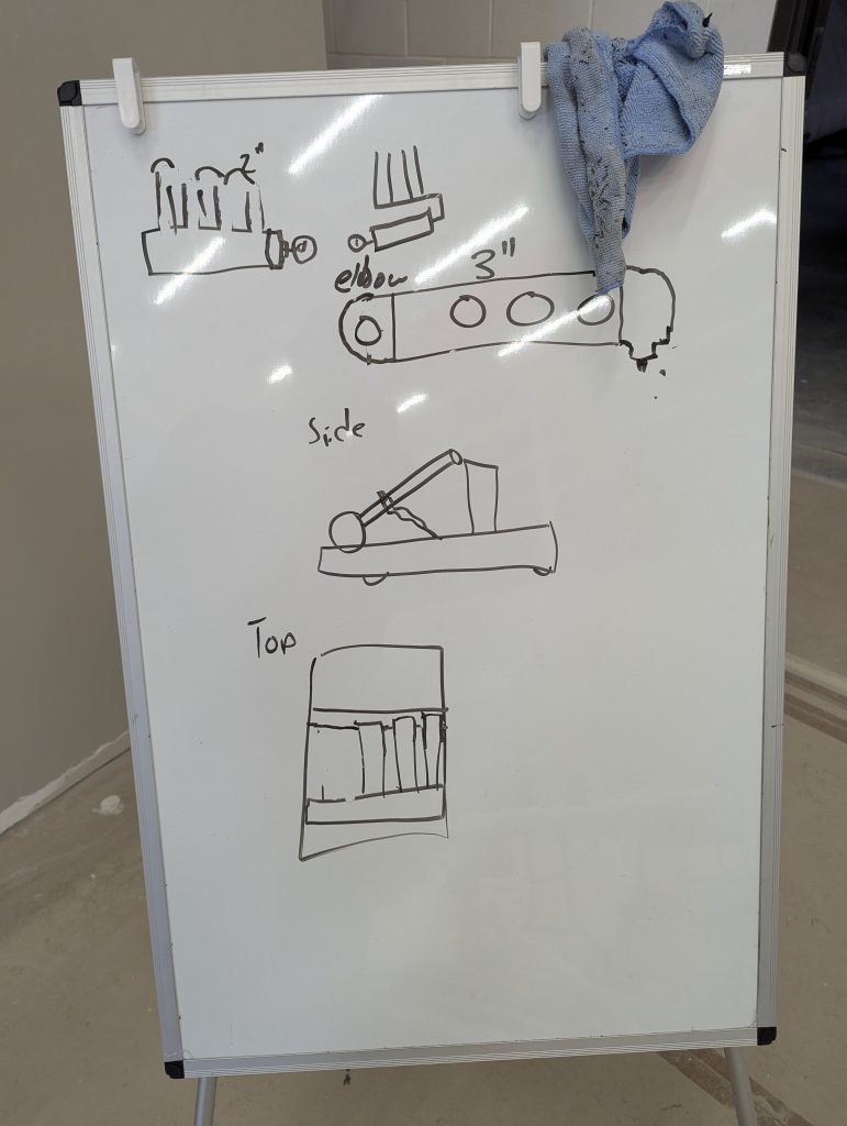 The team started by drawing sketches for what the robot should look like. After the basic sketches, they built a CAD model of how all of the components would fit together. CAD models were built using OnShape Education edition: T-Shirt Cannon Robot Workspace